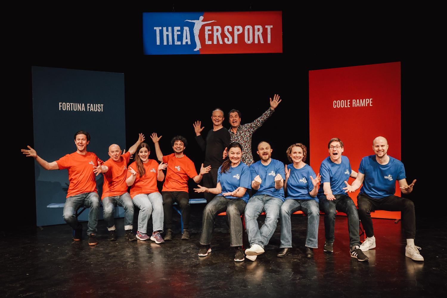 Theatersport™ ist ein einzigartiges Schauspiel, bei dem zwei Teams von talentierten Impro-Schauspielerinnen und Schauspielern in der Kunst der Improvisation gegeneinander antreten. Die Teams „Coole Rampe“ in Rot und „Fortuna Faust“ in Blau bieten einen unvergesslichen Abend voller Spannung, Humor und unerwarteter Wendungen – und das Publikum bestimmt, welches Team am Abend als Sieger hervorgeht. Jede Aufführung im Theatersport™ ist ein unwiederholbares Erlebnis, geprägt durch die Energie des Moments und die Kreativität der Schauspieler. Die Zuschauer spielen dabei eine zentrale Rolle: Sie entscheiden über Stil und Thema der Darbietungen – sei es ein Gänsehaut erregender Horror, ein actiongeladener Western, ein rätselhafter Krimi oder eine Hommage an Schiller. Jede Vorstellung ist ein einzigartiges Abenteuer, gefüllt mit Leidenschaft, Spontanität und purer theatralischer Magie!